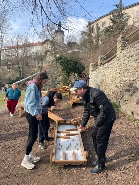 Úterý: V parku jsme se vydováděli u kuličkové dráhy a plnili zábavné úkoly. Polední hlad jsme zahnali vlastnoručně upečenou pizzou a odpoledne si potrápili hlavy při výrobě vlastní verze hry Scrabble.